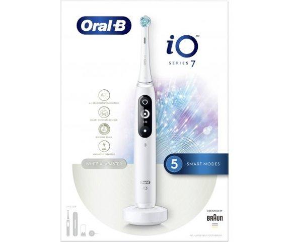 Oral-B iO Series 7 (White Alabaster) električna četkica sa 5 pametnih načina rada za personalozovano četklanje: dnevno čišćenje, izbjeljivanje, njega desni, osjetljivo i intezivo - AI prepoznavanje stila četkanja - Povezivanje sa aplikacijom