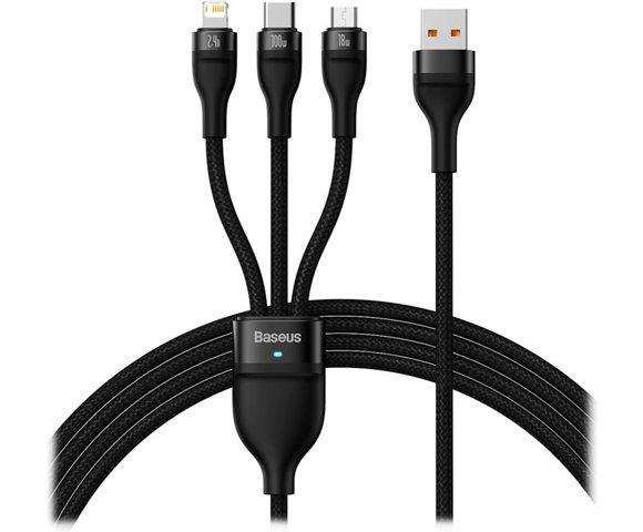 Baseus 3in1 USB cable Flash Series, USB-C + micro USB + Lightning, 100W, 1.2m (black)