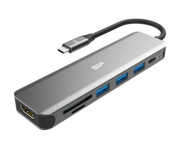 Silicon Power BOOST SU20 USB-C Hub, USB-C input and power, HDMI Output(4K), 3xUSB-A (3.2 gen1), SD and microSD card reader up to 7 devices, Aluminium
