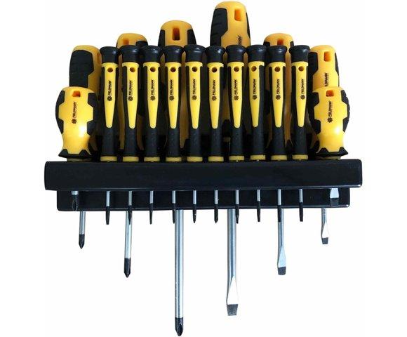 FIELDMANN FDS 5007-18R Set odvijača - Boja: Žuta Materijal: CR-V Dimenzije: Mali Phillips šrafcigeri: 00 x 50mm, 0 x 50mm, Mali precizni ravni šrafcigeri: 2.0mm x 50mm, 2.5mm x 50mm, 3.0mm x 50mm, Mali torx šrafcigeri..