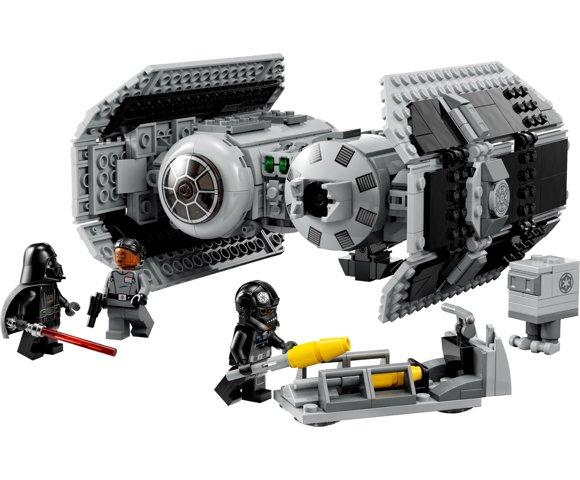 Kućni ljubimciLEGO 75347 TIE Bomber sadrži minifigurice Dartha Vadera, viceadmirala Sloanea i TIE Bomber Pilota s oružjem, plus LEGO figuricu Gonk Droida i kolica za transport torpeda za TIE Bomber