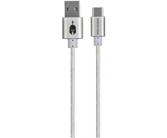 Spartan Gear Double Sided Charging Cable - Type C - White - 2.0A USB priključak na USB tip C - Podržava brzo punjenje 3.0 - Aluminijumsko metalno kućište