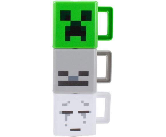 Paladone Minecraft Šolja - Set of 3 Stacking Mugs - Set uključuje 3 šoljice u obliku bloka s dizajnom Creepera, Skeleta i Ghasta