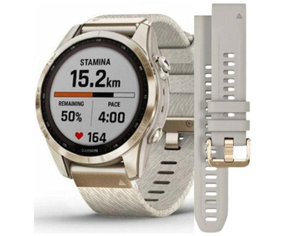 Kućni ljubimciGarmin (010-02539-39) Fēnix® 7S – Sapphire Solar Edition - Krem-zlatni titanijski s najlonskim remenom nijansirane krem boje