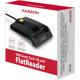 Kompaktni desktop čitač pametnih kartica / ID kartica AXAGON CRE-SM3N FlatReader sa USB 2.0 interfejsom. Čitač kartica podržava sve uobičajene formate kontaktnih pametnih kartica, čip kartice i druge kartice, uključujući kontakt bankovne platne kartice ili kontakt elektronske ID kartice *. Čitač je kompatibilan sa većinom nacionalnih aplikacija za eID (elektronske lične karte).