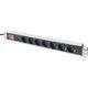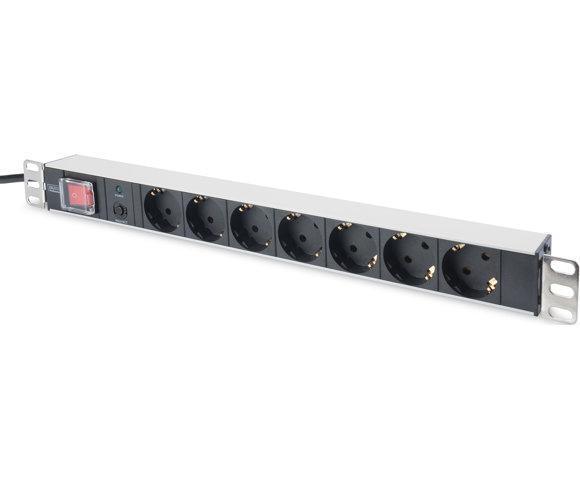 Digitus Outlet Strip 1U Aluminum PDU DN-95403, Veličina: 19", Broj utikača: 7 AC sigurnosnih utičnica, Vršna snaga: 4000 W, Nazivni ulazni napon: 250 V, Ulazna frekvencija: 50 - 60 Hz, Dužina kabla: 2 m