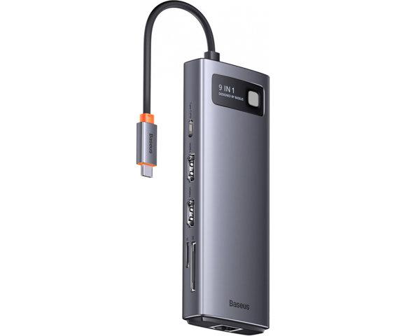 Baseus Hub 9in1 Metal Gleam Series, USB-C to 2x USB 3.0 + 2x HDMI + USB 2.0 + USB-C PD + Ethernet RJ45 + microSD/SD