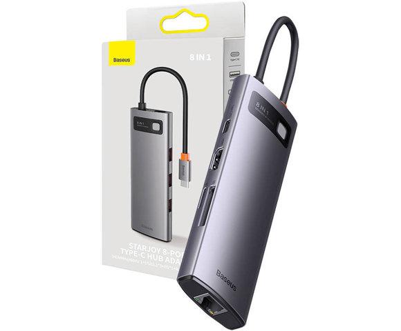 Kućni ljubimciBaseus Hub 8in1 StarJoy Series, USB-C to 3x USB 3.1 + HDMI + USB-C PD + RJ45 + microSD/SD