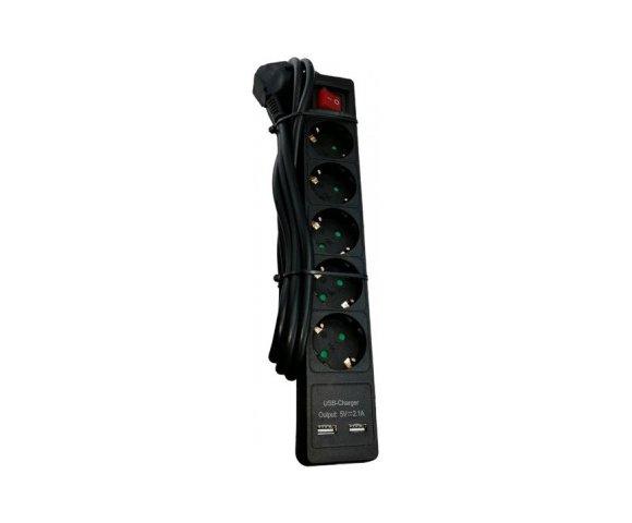 E-GREEN Produzni kabl 5u/2m sa Prekidacem + 2xUSB 2.0 (crni)