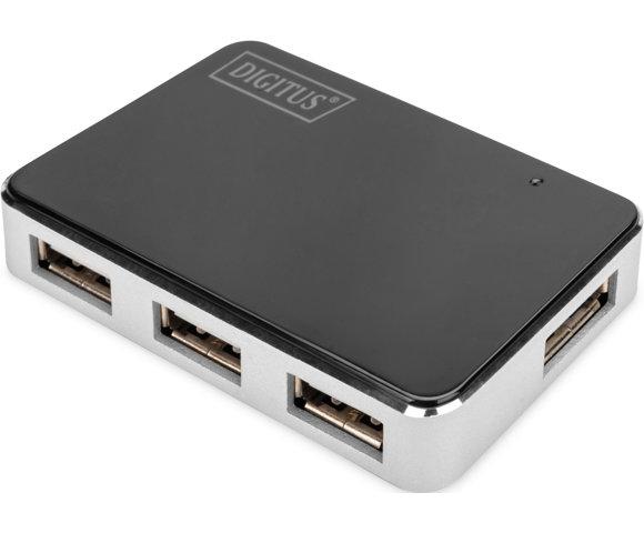 Digitus DA-70220 USB 2.0, 4-Port Hub, 4x USB A/F, 1x USB Bmini/F incl. USB A/M to mini5P cable, USB 2.0 Mini-B, USB 2.0, 480 Mbit/s, Crno, Srebrno, 0,66 m - 18429