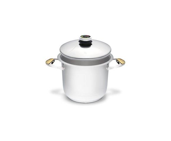 Multifunkcionalnost ove Zepter Masterpiece posude je neograničena. Savršena je za pripremu mesa, pirinča, testenine, supa, povrća, karija, plodova mora, krompira i mnogih drugih jela u velikim količinama. Takođe je vrlo popularna za pripremanje soka od paradajza, džemova i slatka od raznih vrsta voća. Kombinacija Zepter superiornog metala 316L, akutermno-kompaktnog dna, Zepter poklopca i ivice posude neophodna je za pripremu zdrave hrane u sopstvenim sokovima i na niskim temperaturama.