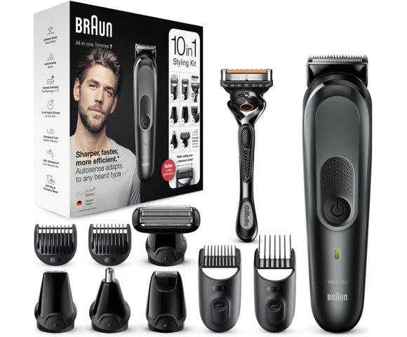 1 x MGK7321, 1 x Fiksni češljevi od 1 mm i 2 mm, 1 x Češalj 3–11 mm, 1 x Češalj 13–21 mm, 1 x Trimer za uši i nos, 1 x Trimer za detalje, 1 x Aparat za negu tela, 1 x Mini aparat za brijanje sa folijom, 1 x Četka za čišćenje, 1 x Punjač, 1 x Postolje za punjenje, 1 x Brijač Gillette ProGlide, 1 x Torbica |