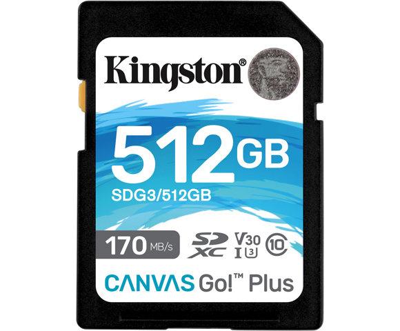 Kingston SDG3/512GB memorijska kartica Canvas Go! Plus, 512 GB, SD, Klasa 10, UHS-I, 170 MB/s, 90 MB/s, U3 V30 SDXC 170R C10