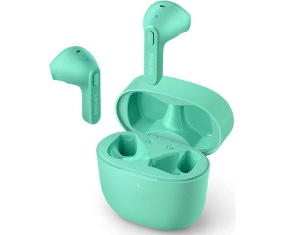 Philips slušalice 2000 series TAT2236GR, Bubice, Bluetooth 5.0, Domet do 10m, IPX4Bežični, 20 - 20000 Hz, Pozivi/muzika, 36 g, Slušalice sa mikrofonom, Vreme neprekidne reprodukcije audia: 6h (18h sa kutijicom), Vreme punjenja baterije: 2h, USB tip C (tirkizna) - 0001242650