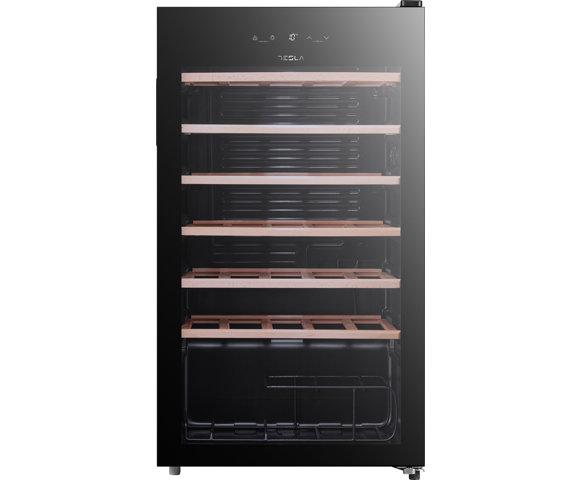 Tesla vinska vitrina RW092M, Kompresorska rashladna vitrina za vino, Kapacitet: 34 boce, Materijal polica: Drvo, Boja: Crna, Broj polica: 6, Kontrole na dodir, Dimenzije(ŠxDxV): 470 mm x 470 mm x 845 mm, Potrošnja struje: 0,397 kWh/24h, Energetske efikasnost: G