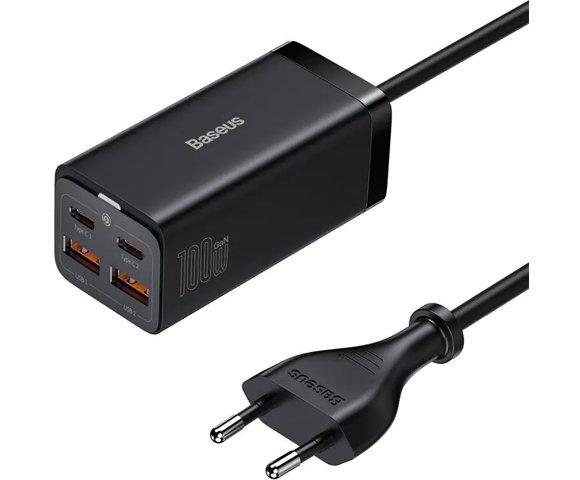 Baseus GaN3 Pro 100W 2xUSB-C + 2xUSB zidni punjač CCGP000101 wall charger - Ukupna izlazna snaga: 100W - Dužina kabla: 1.5 m - Ulazni napon: AC 110-240 V, 50-60 Hz, 2.5 A Max - Boja: Crna - Težina: 295 g - Dimenzije: 85.6 x 40.7 x 37.8 mm - 6953156209053