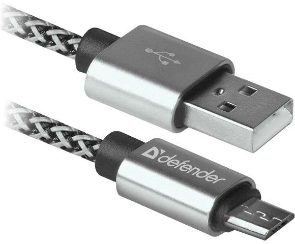 Defender USB08-03T PRO USB2.0 microUSB 2.0 1m kabl (87803), Dužina kabla: 1 m, Konektori: USB 2.0 (AM) - microUSB 2.0 (BM), Maksimalna struja: 2.1 A, Interfejs: USB 2.0, Boja: Bijela, ROHS/CE