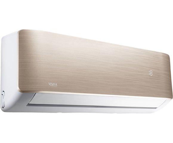 VIVAX cool R DESIGN GOLD 3,81kW, ACP-12CH35AERI GOLD R32 • Kapacitet hlađenja/grijanja: 3,52(0,82-4,16)kW/3,81(0,85-4,78)kW • Ekološki plin: R32 • Energetska klasa (h/g): A++/A+ • SEER/SCOP koef.: 7,00/4,10 • Funkcionalnosti: I feel funkcija, Ionizator, Auto mode, sleep mode, soft start, Memory funkcija (auto restart), Automatsko otapanje, Turbo funkcija, 24h timer, Zaštita priključnih ventila, Samodijagnostika