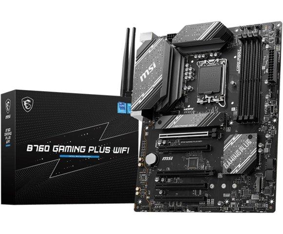MSI B760 GAMING PLUS WIFI matična ploča - Socket: Intel LGA 1700 - Memorijski slotovi: 4xDDR5-SDRAM (MAX: 192 GB) - Podržani interfejsi uređaja za skladištenje: M.2, SATA - Wi-Fi 6E (802.11ax) - Bluetooth 5.3 - Standard dimenzija matične ploče: ATX - PLO03568