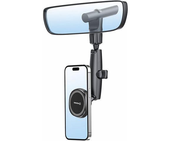 Swissten Rearview Mirror Magnetic Car Holder (65010710) - Magnetni držač telefona za retrovizor - Magsafe kompatibilna tehnologija pričvršćivanja - 8595217480476