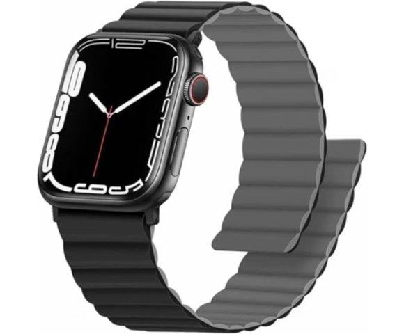 Swissten Apple watch magnetic silicone band remen za smartwatch (46000511), Veličina: 42, 44, 45, 49mm, Boja: Crna/Siva, Kompatibilni modeli: Apple Watch Series 1, 3, 4, Extremist, Kopča: Magnetno zatvaranje