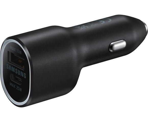 Samsung EP-L4020NBEGEU Car Charger 40W, Izvor napajanja: Upaljač za cigarete, Snaga: 40W, USB-C portova: 1, Ulazni napon: 12V, Izlazna snaga porta 1: 25W, Izlazna snaga porta 2: 15W, Boja: Crna, Težina: 36,5g, Dimenzije: 80x26x34mm