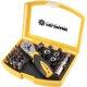 15x bitova od 25mm: H3, H4, H5, H6, SL3, SL4, SL5, SL6, PZ1, PZ1, PZ2, PH2, PH3, T10, T15, 1x produžetak, 1x račna, 6x nasadnih ključeva ¼ inča |