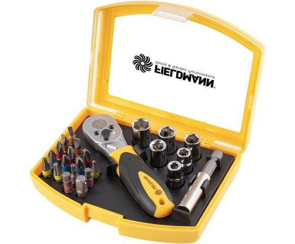 FIELDMANN FDS 1018-23R set bitova sa odvijačem - Pakovanje: 15x bitova od 25mm: H3, H4, H5, H6, SL3, SL4, SL5, SL6, PZ1, PZ1, PZ2, PH2, PH3, T10, T15, 1x produžetak, 1x račna, 6x nasadnih ključeva ¼ inča - ALA00337