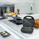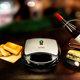 Jednostavan aparat za pripremu sendviča zadovoljava svaku želju. Jednostavan sistem klikova omogućava vam da se prebacite između tanjira sa neprijanjajućim premazom u sekundi i dočarava ukusne kreacije na vašem tanjiru. Hrskavi tost, zapečen tačno onako kako volite. Belgijski vafli, laki za ukrašavanje. Kobasice ili odresci, ukusno pečeni na roštilju.