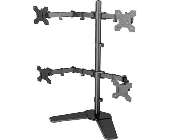 SHORTHORN T044 zglobni stoni nosač za četiri monitora 15 - 33", Montiranje: VESA 100mm x 100mm, VESA 75mm x 75mm, Podržane dijagonale: 15 inča - 33 inča, Nosivost: 8kg, Dodatne mogućnosti: Tilt, Swivel, Rotiranje, Uglovi pomeranja: Rotacija ekrana 360 stepeni, Swivel ± 90 stepeni, Tilt 90 stepeni