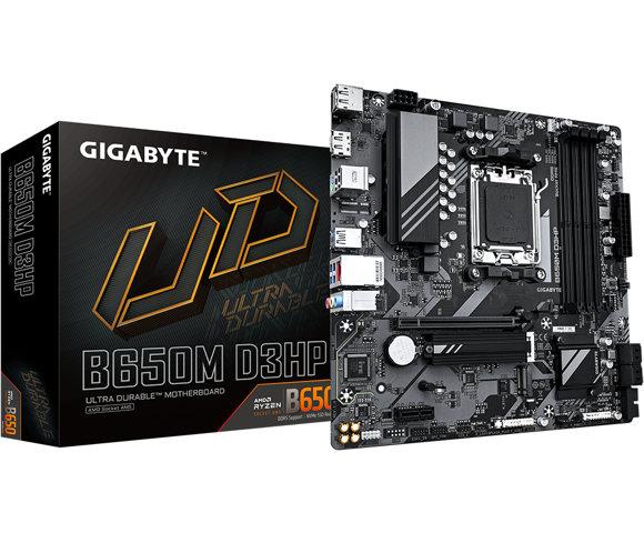 GIGABYTE B650M D3HP matična ploča - Socket: AMD AM5 - Memorijski slotovi: 4xDDR5-SDRAM (MAX 192GB do 7600 MHz) - Podržani interfejsi uređaja za skladištenje: M.2, PCI Express 4.0, SATA III - Standard dimenzija matične ploče: mikro ATX - 0889523039083