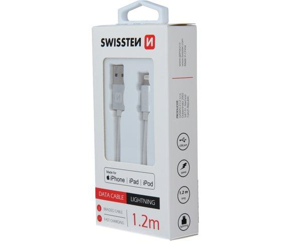 Swissten Textile MFi USB/Lightning 1.2m SILVER kabl