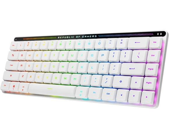 ASUS ROG Falchion RX Low Profile bežična tastatura (90MP03EC-BKUA10), Prekidač tastera: ROG RX Low-Profile prekidač, Povezivanje: USB 2.0 (TypeC to TypeA) / Bluetooth 5.1 / RF 2.4GHz, RGB osvjetljenje, AURA Sync, Boja: Bijela, 0001338113