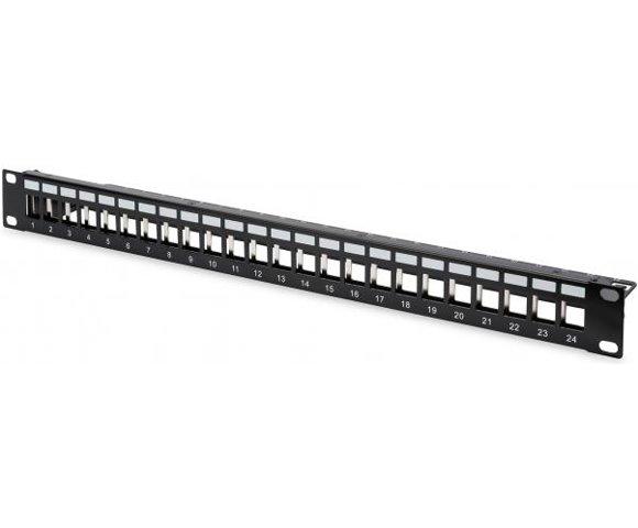 Digitus DN-91411 Patch panel prazni, 25-port shielder, 1U, crni, Veličina stalka: 483 mm (19"), Jedinica visine: 1U, Tehnika priključivanja: Keystone modul, Težina: 0.87 kg, EAN: 4016032280798