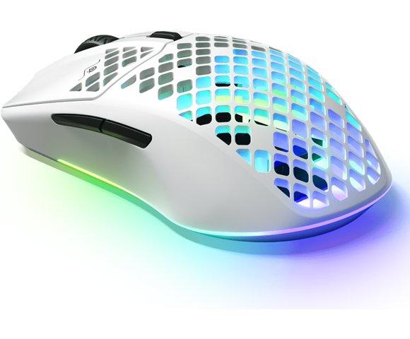SteelSeries Aerox 3 Wireless (Snow) bežični gaming miš, Senzor: SteelSeries TrueMove Air, Tip senzora: Optički, CPI: 100–18,000 u 100 CPI koracima, Polling Rate: 1000Hz / 1 ms, Broj tastera: 6, 3 RGB zone osvetljenje, Trajanje Baterij: Do 80 sati (2.4GHz) / Do 200 sati (Bluetooth), EAN: 5707119043298
