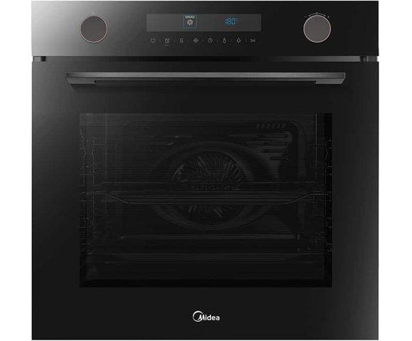 Midea 7NP30E0B ugradna rerna, Pirolitička multifunkcionalna pećnica, Zapremina: 65l, Snaga pećnice: 3200W, Unutrašnje osvjetljenje sa 2 halogene lampe, Dimenzije proizvoda (ŠxDxV): 595/566/596mm, Broj programa pećnice: 12, EAN: 6944271672488