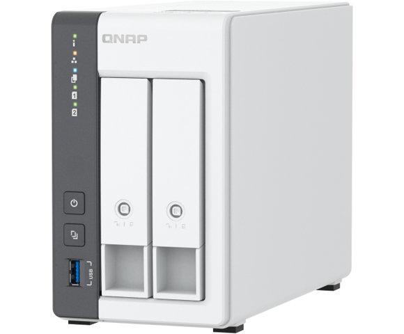 QNAP TS-216G NAS uređaj, Tip: NAS (Tower, aktivno hlađenje), Procesor: ARM Cortex-A55 (4 jezgra, 2GHz), RAM: 4GB, HDD/SSD podrška: 2x (2.5"/3.5", SATA, hot-swap), Interfejs: 2x RJ-45 (Ethernet do 2.5Gbps), 2x USB 2.0, 1x USB 3.2 Gen 1, Napajanje: 65W (ugrađeno), Dimenzije: 102x220.6x165 mm, Težina: 1.45 kg
