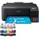 EPSON EcoTank L1230 inkjet štampač (C11CJ70402), Tehnologija: Epson Micro Piezo™ glava pisača, 4 boje, Rezolucija štampe: 5.760 × 1.440 dpi, Brzina ispisa: 10 str/min (monokrom), 5 str/min (boja), 69 sekundi po fotografiji (10 × 15 cm), Formati papira: A4, A5, A6, Legal, omotnice, Kapacitet ladice: 30 listova, Kompatibilni OS: Windows, Mac OS, Potrošnja energije: 12 W (ispis), Dimenzije: 375 × 347 × 169 mm