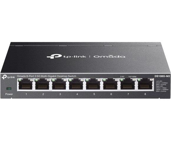 TP-Link Omada DS108G-M2 switch│ Tip: Nemenažirani komutator, Portovi: 8x 2.5G Ethernet (100/1000/2500 Mbps), QoS podrška, Kapacitet razvodnika: 40 Gbit/s, Adresna tabela: 4000 unosa, Paket bafer: 8 MB, Materijal: Metal vb│ Napajanje: 12V DC, 8,87 W, Dimenzije: 158x101x25,4 mm