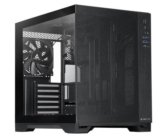 Chieftec VISIO AIR GM-30B-M-OP kućište, Matične ploče: ATX, mikro ATX, Ventilatori: 1x140mm (zadnji), 2x140mm (donji), Maksimalna dužina GPU: 41 cm, Maksimalna visina CPU hladnjaka: 17,5 cm, USB portovi: 2x USB 3.2 Gen 1, 1x USB Tip-C, Dimenzije: 295 x 430 x 390 mm, Težina: 6,8 kg, Materijal: Kaljeno staklo