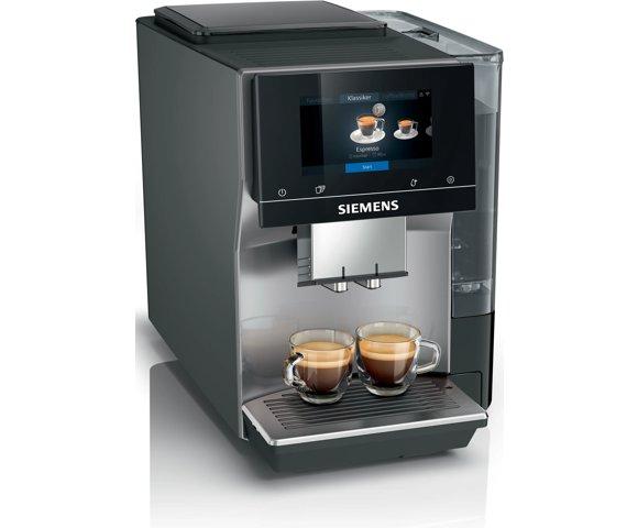 Siemens TP715R01 potpuno automatizovani aparat za kafu, Pritisak pumpe: 19 bar, Izbor napitaka: 35 (Cappuccino, Espresso, Čaj), Zapremina posude za vodu: 2.4 l, Kapacitet posude za zrna: 320 g, Dimenzije: 380 x 309 x 467 mm, Težina: 9.8 kg, Displej: TFT ekran osetljiv na dodir, Home Connect, Materijal mlina: Keramika, Podesivi parametri: aromaSelect, jačina, veličina
