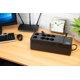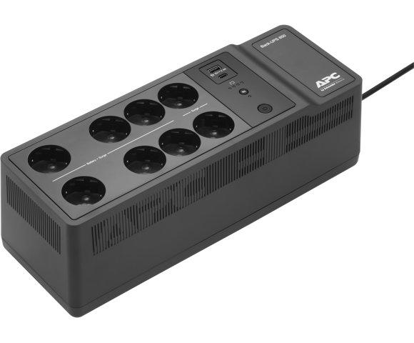 APC BE850G2-GR UPS, Topologija: Pripravnost (van mreže), Izlazna snaga: 0,85 kVA / 520 W, Talasni oblik: Sinusoida, Napon (ulaz/izlaz): 220-230 V, Frekvencija: 47/63 Hz, Zaštita od prenapona: Da (310 J), Broj utičnica: 8 (Tip F), USB portovi: 2 (USB 2.0), Baterija: Zapečaćena olovna kiselina (93 Ah), Vreme punjenja 16 h, Vreme rada (polovina opterećenja): 9 min, Dimenzije (ŠxDxV): 130 x 365 x 120 mm, Težina: 4,5 kg, Boja: Crno, LED indikatori, Nivo buke: 45 dB