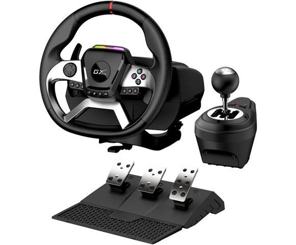 GENIUS SpeedMaster X5 FF volan │ Povezivost: USB-C, Kompatibilnost: PC, PS4, Xbox One, Tasteri: 18, Vibracija: Da, Ostalo: Dual Vibration Feedback Motors, Rotacija 1080 stepeni, Boja: Crna