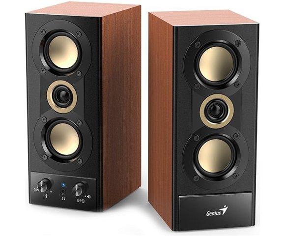 GENIUS SP-HF800BT wood zvučnici, Tip: Zvučnici za računar (Aktivni, 2.0 sistem), Snaga: 2 x 10W, Frekventni opseg: 80Hz ~ 20KHz, Drajveri: 1 inč (tweeter), 2 inča (full range), Kućište: Drvo, Žična povezivost: RCA (2), 3.5mm (1), USB-A (1), Bežična povezivost: Bluetooth 5.3, Upravljanje: Analogni potenciometar, Dimenzije: 222mm x 132.5mm x 94mm, Masa: 1.915g
