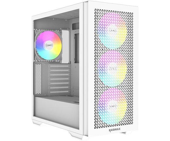 RAIDMAX MESHIAN X605 White kućište (X605TWF), Format kućišta: ATX, Podržani formati ploča: ATX, E-ATX, microATX, Mini-ITX, Snaga napajanja: Bez napajanja, Prednji ventilatori: 3x140mm ARGB, Zadnji ventilator: 1x140mm ARGB, Hladnjaci: Prednji (360mm, 420mm), Zadnji (120mm), Gornji (360mm), Maks. visina CPU hladnjaka: 175mm, Maks. dužina GPU: 400mm, Dimenzije: 485mm x 470mm x 230mm, Materijal: Kaljeno staklo, Metal, Plastika, Boja: Bijela