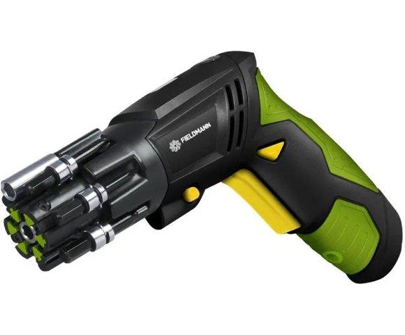 FIELDMANN FDS 10102-A Akumulatorski odvijač, Tip uređaja: Akumulatorski odvijač, Broj obrtaja: 180/min, Kapacitet baterije: Li-ion 1.300mAh, Napon: 3.6V, Brzina punjenja: 3-5 sati, Boja: Crna, Zelena, Žuta, Ostalo: 6 obrtnih nivoa, 2 položaja ručke, Masa (Bruto): 0.5kg