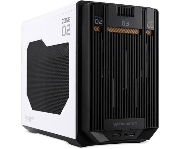 Acer MI900 Predator gaming kućište (DC.Z3XEE.001), Materijal: Plastika, Čelik, Dimenzije: 179 x 336 x 257.5 mm, Faktor oblika: Mini-ITX, Podrška za napajanje: SFX, Maks. GPU dužina: 310 mm, Maks. CPU hladnjak: 41.5 mm, Radijatori (vrh): 120/240 mm, Ventilatori (vrh): 2x 120 mm, Prednji I/O: USB 3.2 Type-C, Type-A, HD Audio, Mikrofon, Ležišta za diskove: 2x 2.5" SSD, Slotovi za proširenje: 3 vertikalna (riser kabl potreban), ARGB osvetljenje: Prednji panel