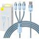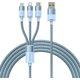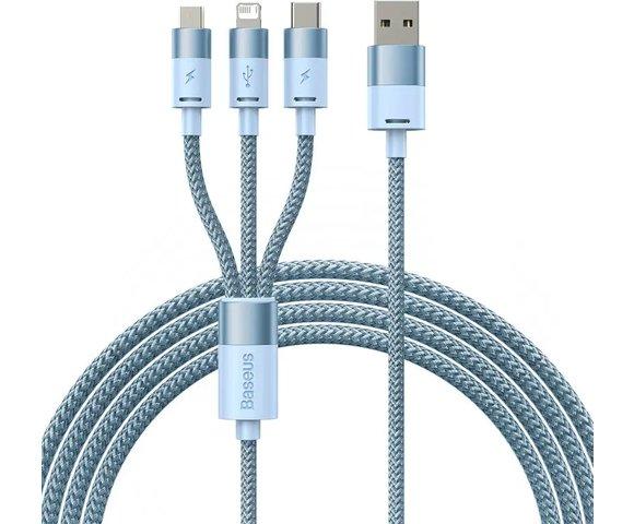 Baseus StarSpeed 3u1 1.2m kabl │ Boja: Plava, Materijal: Aluminijumska legura + najlon, Dužina: 1.2 m, Struja: 5V / 3.5A, Brzina prenosa: 480 Mbps, Konektori: USB-C, Micro USB, Lightning