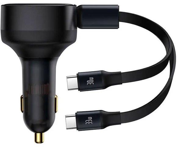 Baseus Enjoyment Car Charger 33W auto punjač sa kablovima, Materijal: ABS + PC, aluminijumska legura, Ulaz: DC 12-24V 3.5A max, Izlazi: 2x USB-C (33W max.), Boja: Crna, Dimenzije: 80 x 46 x 49 mm, Težina: 78 g, Dužina kabla: 75 cm max.