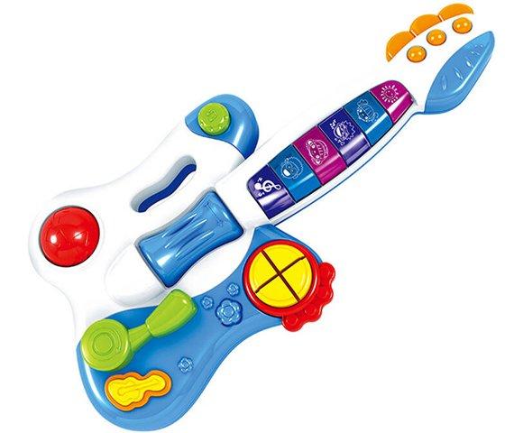 Huanger interaktivna muzička gitara je šarmantna igračka koja podsjeća na pravi muzički instrument i uvodi vaše dijete u fascinantni svijet melodija i ritmova, dok istovremeno razvija manulane i kognitivne vještine.